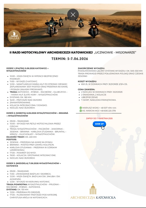 Serdecznie zapraszamy na II Rajd Motocyklowy Archidiecezji Katowickiej. Termin: 5-7.06.2026. Szczegóły na plakacie .