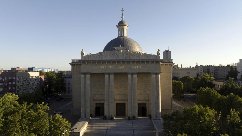 Archikatedra Chrystusa Króla z lotu ptaka. Zapraszamy do obejrzenia krótkiego filmu prezentującego kościół oraz jego otoczenie w jakości 4K. Autorem nagrania jest Pan Marek (kanał Podniebna Perspektywa).